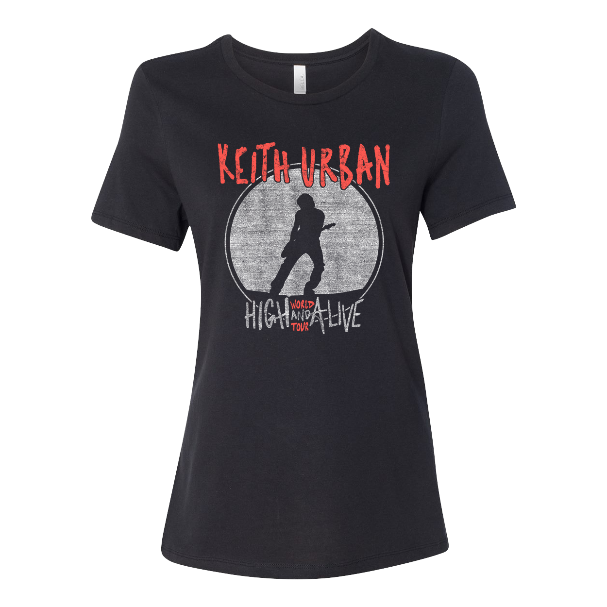 • Vintage black, ladies tee featuring the HIGH AND ALIVE WORLD TOUR logo