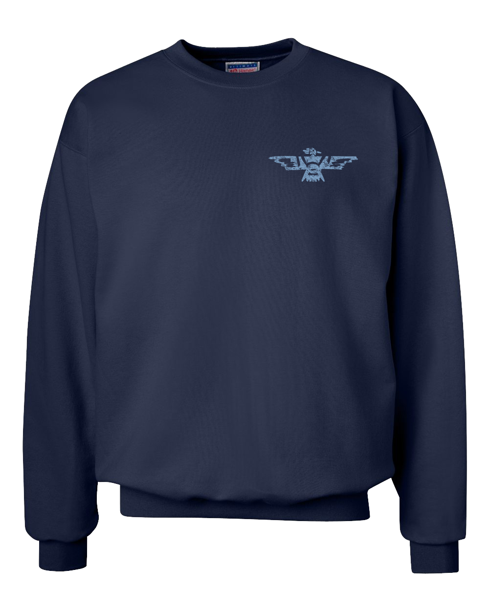 - Navy blue crewneck sweatshirt featuring a hand drawn phoenix logo on the front left chest, and a "KEITH URBAN" phoenix design on the back